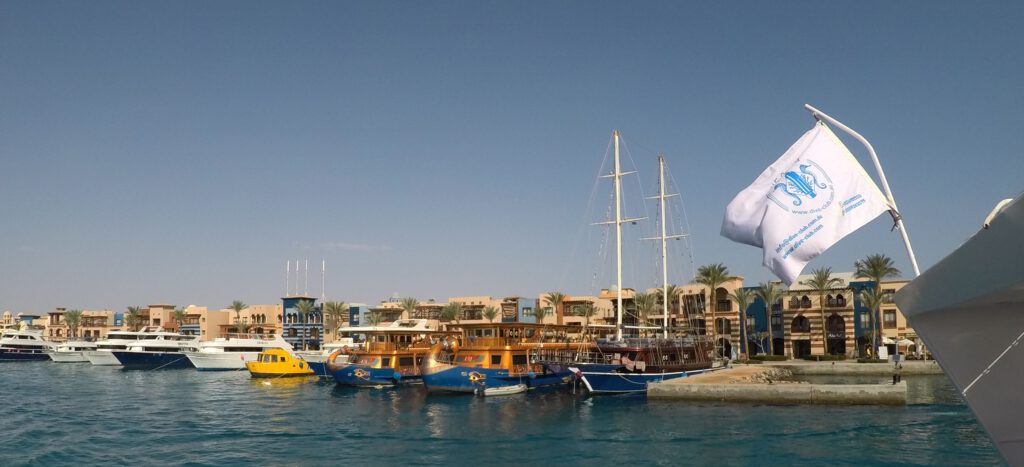 Nach etwa zwei weiteren Stunden auf dem Boot und einem kleinen Mittagssnack hüpfen wir wieder über die kabbeligen Wellen nach Port Ghalib zurück. Ich bin froh, als wir wieder in den Hafen einlaufen, denn mein Magen hat auch reichlich Seegang…