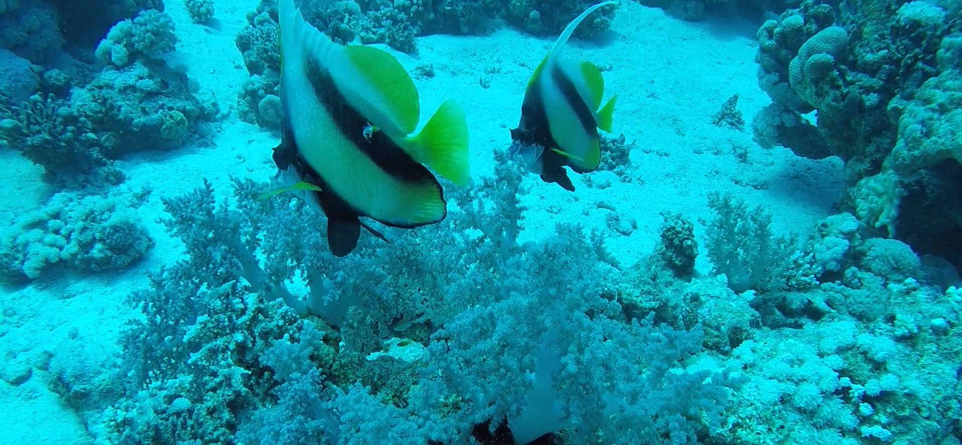 Der große Falterfisch versperrt uns selbstbewusst den Weg, läßt uns zum Schluss aber trotzdem vorbei…