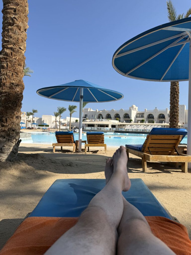 Aber dafür verdienen sie hier vergleichsweise eine Menge Geld: Was ihnen die Gäste zustecken, sammeln und teilen sie auch mit den Leuten, die keinen Kontakt zu den Gästen haben, in der Küche stehen oder kleinere Reparaturen vornehmen. (Jedenfalls lassen sie uns das glauben) Das Durchschnittsgehalt in Ägypten liegt bei gerade mal umgerechnet 75€ im Monat und es sieht danach aus, als ob schon das Trinkgeld in dieser Höhe jeden Tag zusammen kommt. Das macht es aber vermutlich nicht erträglicher – insbesondere wenn es Gäste gibt, die sich respektlos und so gar nicht wertschätzend verhalten. Und davon begegnen uns eine Menge.